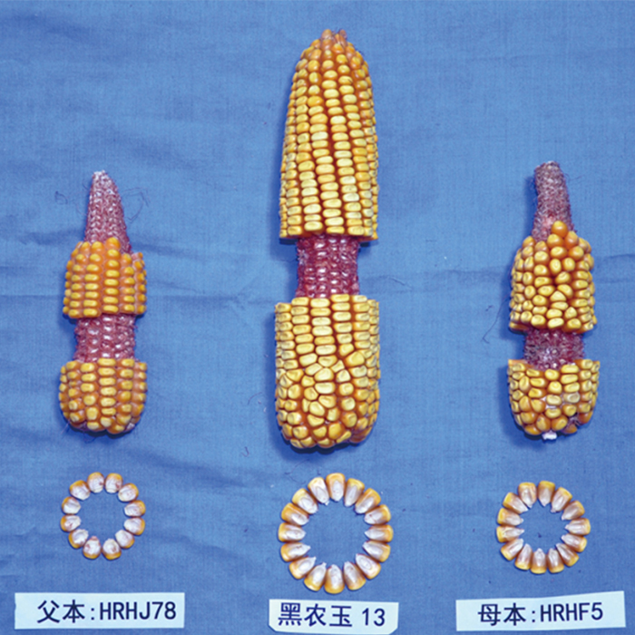 普通玉米品種。在適應區(qū)出苗至成熟生育日數(shù)為120天左右,需≥10°C活動積溫2400°C左右。該品種幼苗期第一葉鞘紫色,葉片綠色,莖綠色。雄穗一級分枝7~10個,穎殼淺紫色,花絲綠色,花藥淺紫色。株高305厘米,穗位高119厘米,成株可見15片葉。果穗長筒型,穗軸紅色,穗長19.1厘米,穗粗5.1厘米,穗行數(shù)14~18行,籽粒馬齒型、黃色,百粒重35.8克。兩年品質分析結果:容重741~752克/升,粗淀粉72.92%~73.38%,粗蛋白9.93%~11.57%,粗脂肪3.28%~4.21%。三年抗病接種鑒定結果:中抗至感大斑病,絲黑穗病發(fā)病率2.0%~10.6%,莖腐病發(fā)病率0.0%~1.1%。